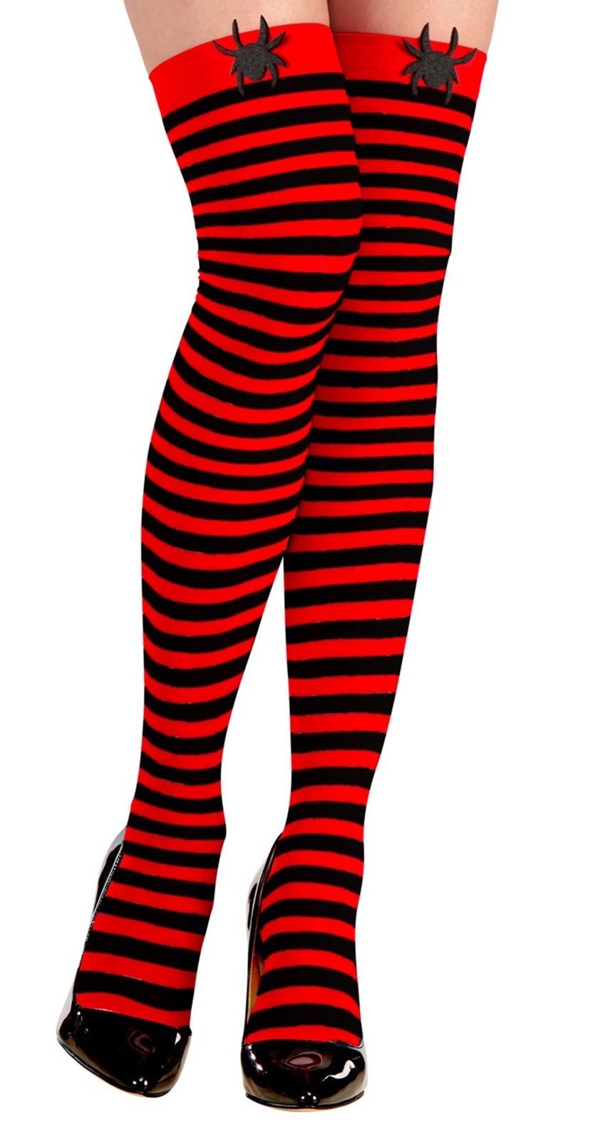 Collants araignées à rayures rouges et noires pour femmes