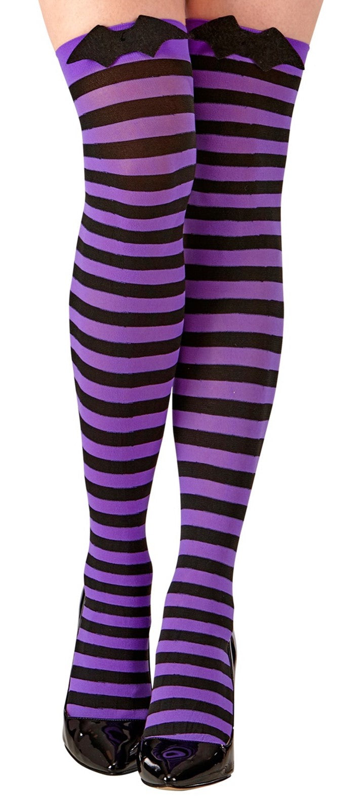 Collants chauve-souris à rayures violettes et noires pour femme