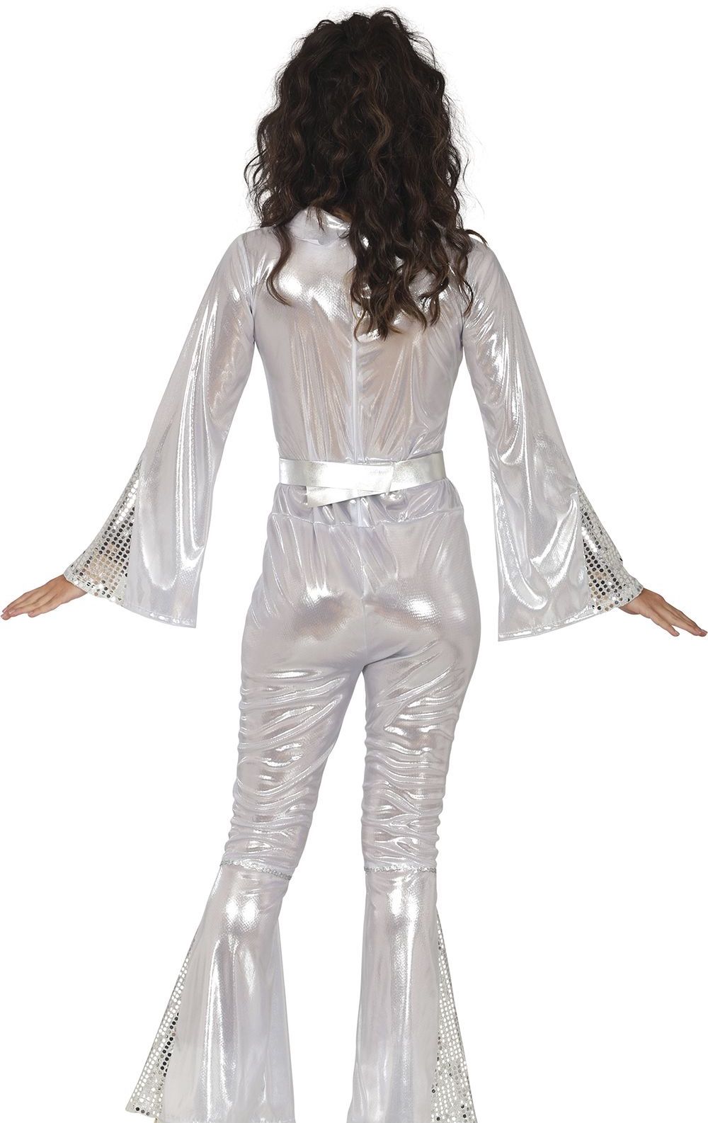 Déguisement disco argenté des années 70 avec vagues pour femme
