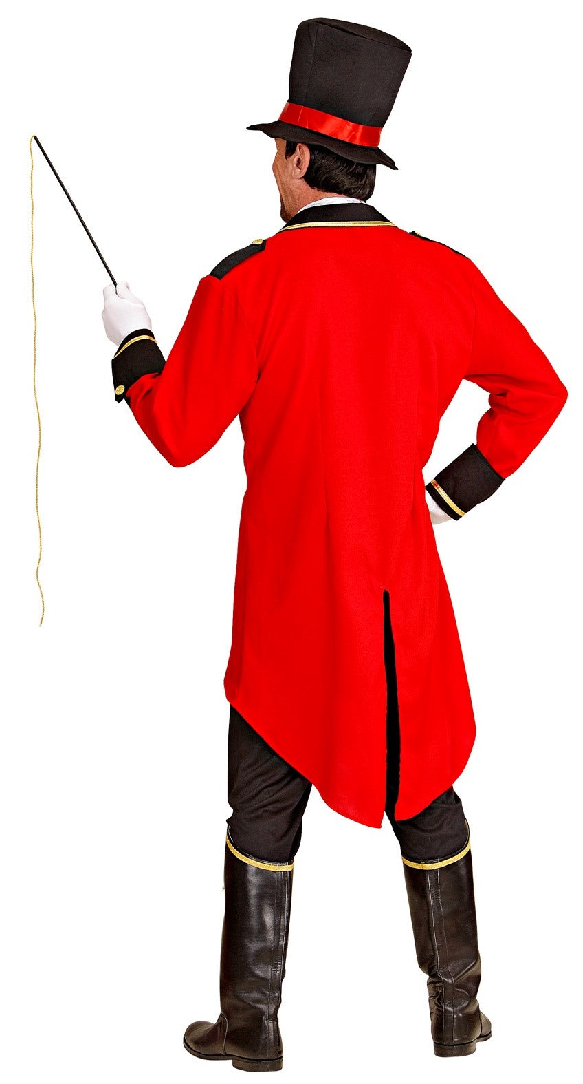 Comprend :veste, gilet avec chemise et nœud papillon, pantalon, chapeau et fouet.
