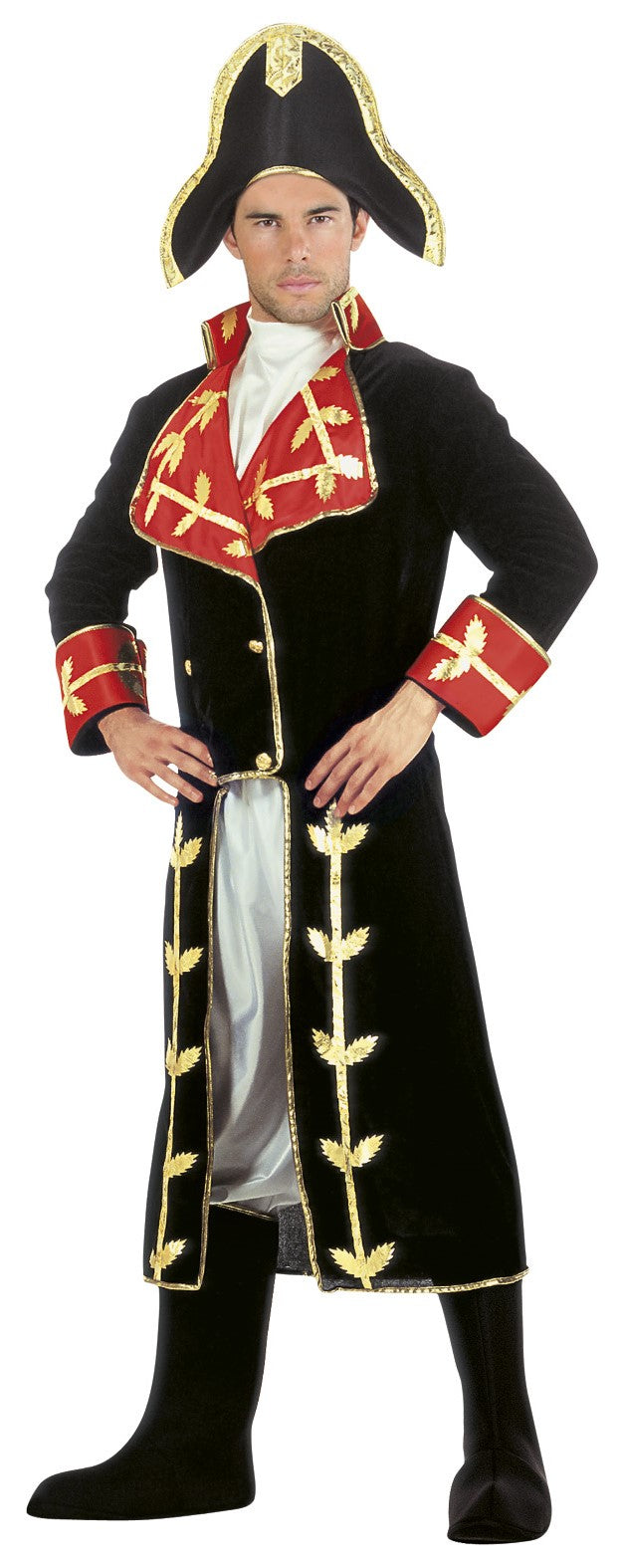 Le déguisement comprend : Veste, jabot, pantalon, couvre-bottes et chapeau