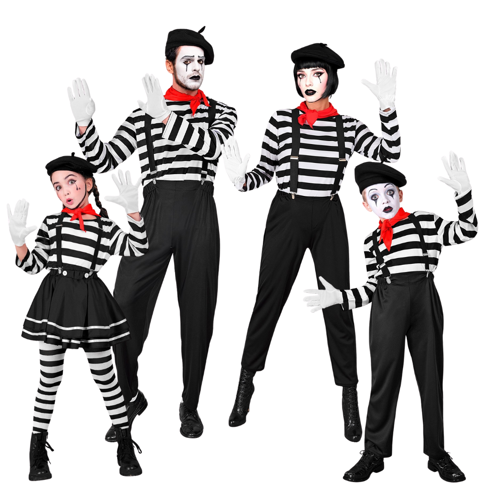 Vous cherchez des déguisements de mime pour un groupe ou une famille ? Avec nos déguisements de mime classiques pour hommes, femmes, garçons et filles, vous trouverez la tenue idéale pour incarner ces sympathiques mimes en famille ou en groupe et faire sensation à la fête costumée.